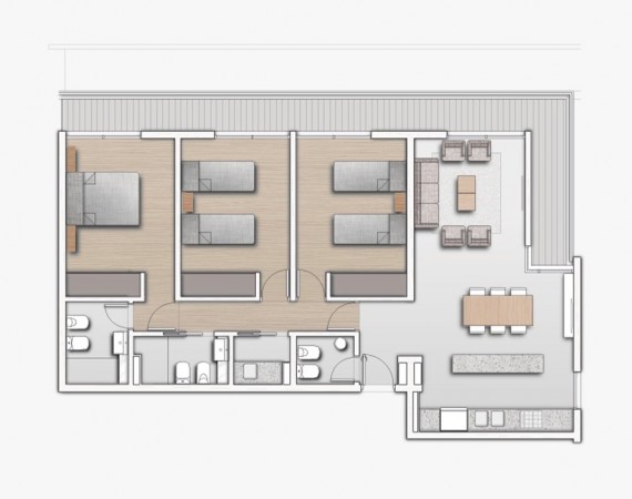 FECHA DE ENTREGA ESTIMADA ABRIL 2024. 3 dormitorios. Modelos de 3 dormitorios: SUPERFICIE TOTAL | 195 M2 SUP. CUBIERTA | 96,35 M2 SUP. SEMICUBIERTA | 18,96 M2 TERRAZA EXCLUSIVA | 79,74 M2 . (Ocultar información)